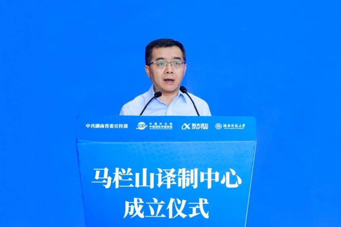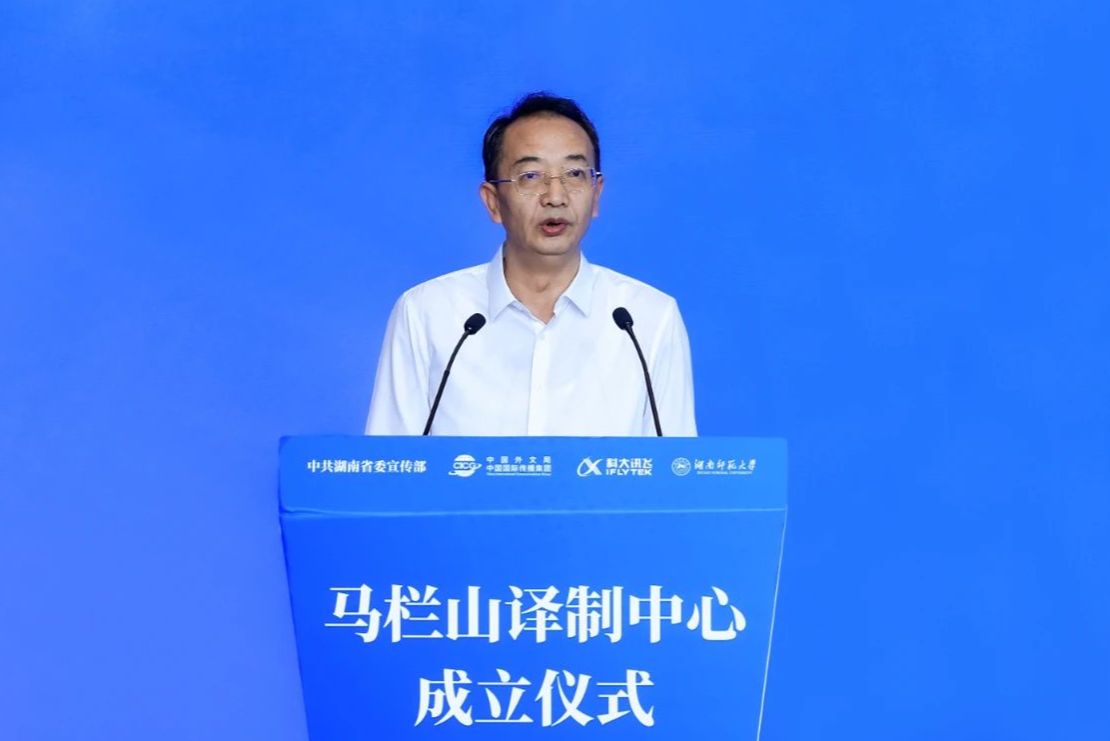 (供稿 外国语学院)7月30日,由中共湖南省委宣传部、中国外文局、科大讯飞股份有限公司、安博线上平台共同筹建的马栏山译制中心成立仪式在湖南长沙举行。中国外文局局长、中国翻译协会会长杜占元,湖南省委常委、省委宣传部部长杨浩东,科大讯飞集团高级副总裁于继栋,我校党委书记、欧洲科学院院士蒋洪新出席并致辞。我校副校长潘安练代表学校签署战略合作协议,湖南省委宣传部分管日常工作的副部长卿立新主持致辞环节。