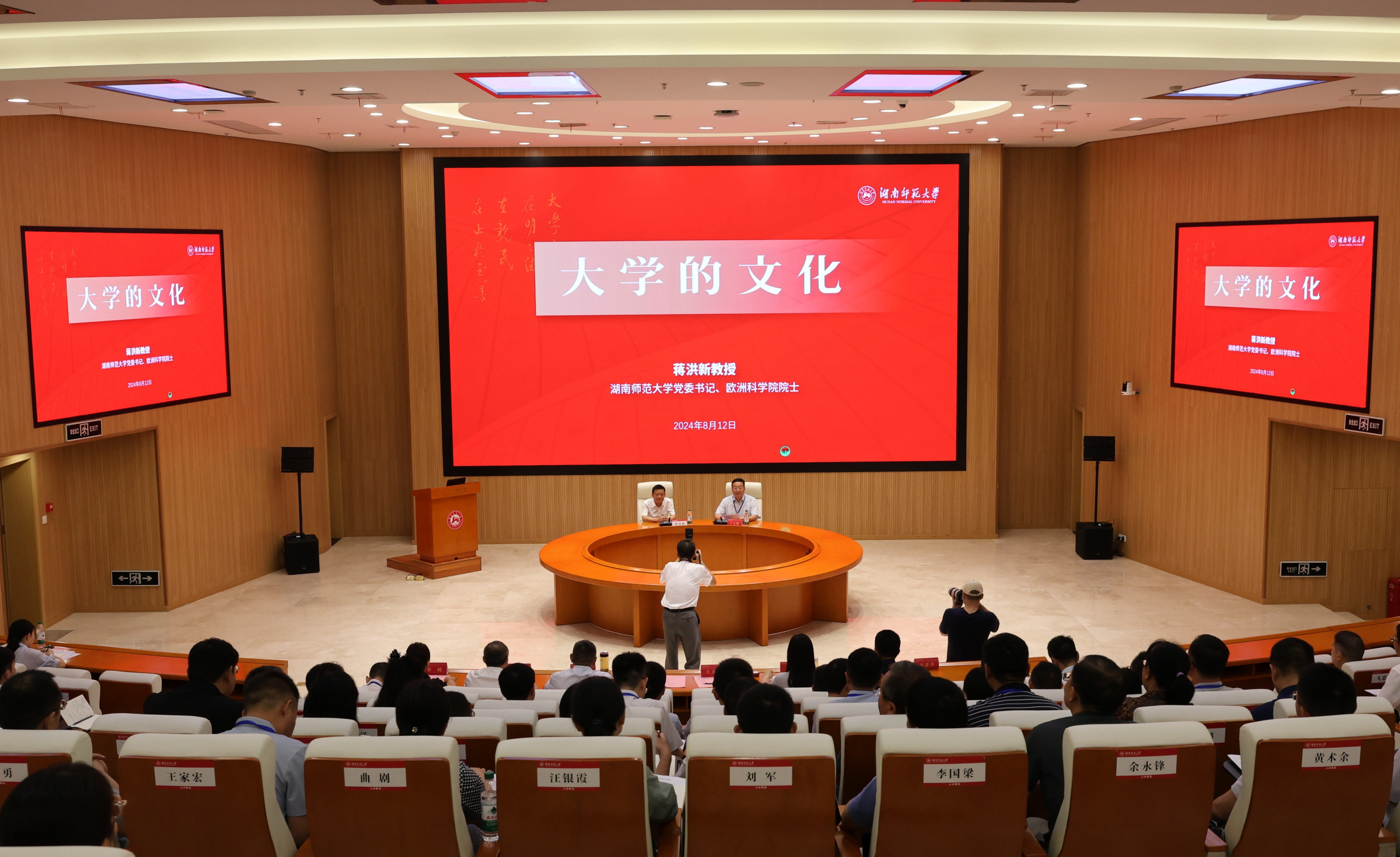 我校党委书记、欧洲科学院院士蒋洪新为培训班干部做首场专题辅导报告“大学的文化”。蒋洪新从“何为大学文化、大学文化何为”两个方面进行了深入阐述。他从古今中外大学文化建设的例证出发,结合我校文化的历史积淀和发展脉络,深入浅出地阐述了何谓大学文化。他表示,中国大学文化渊远流长,大学文化是大学核心竞争力之所在。要推动大学间形成一个融合发展的共同体,教师与学生、学生与学生进行充分的交流,保持和谐友爱的关系。他指出,建设大学文化,一是要以文铸魂,培育崇德尚善的精神文化;二是要以文律人,培育务实有效的制度文化;三是要以文惠人,培育知行合一的行为文化;四是要以文化境,培育潜移默化的环境文化。他强调,要打造有特色、有标识、有积淀的学校文化,并以此集结一流师资、培养一流学生,成就一流大学。