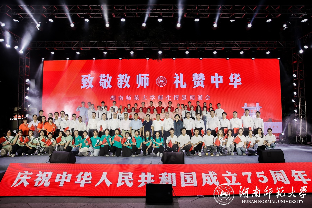 此次朗诵会在户外举办,通过营造喜庆热烈、昂扬奋进的节日氛围,让广大师生深刻体悟在中国共产党的领导下新中国走过的光辉历程,以及一代代湖南师大人秉持仁爱精勤校训精神艰苦创业的动人故事,积极引导师生感党恩、听党话、跟党走,为庆祝中华人民共和国成立75周年献上湖南师大人的一份诚挚祝福。