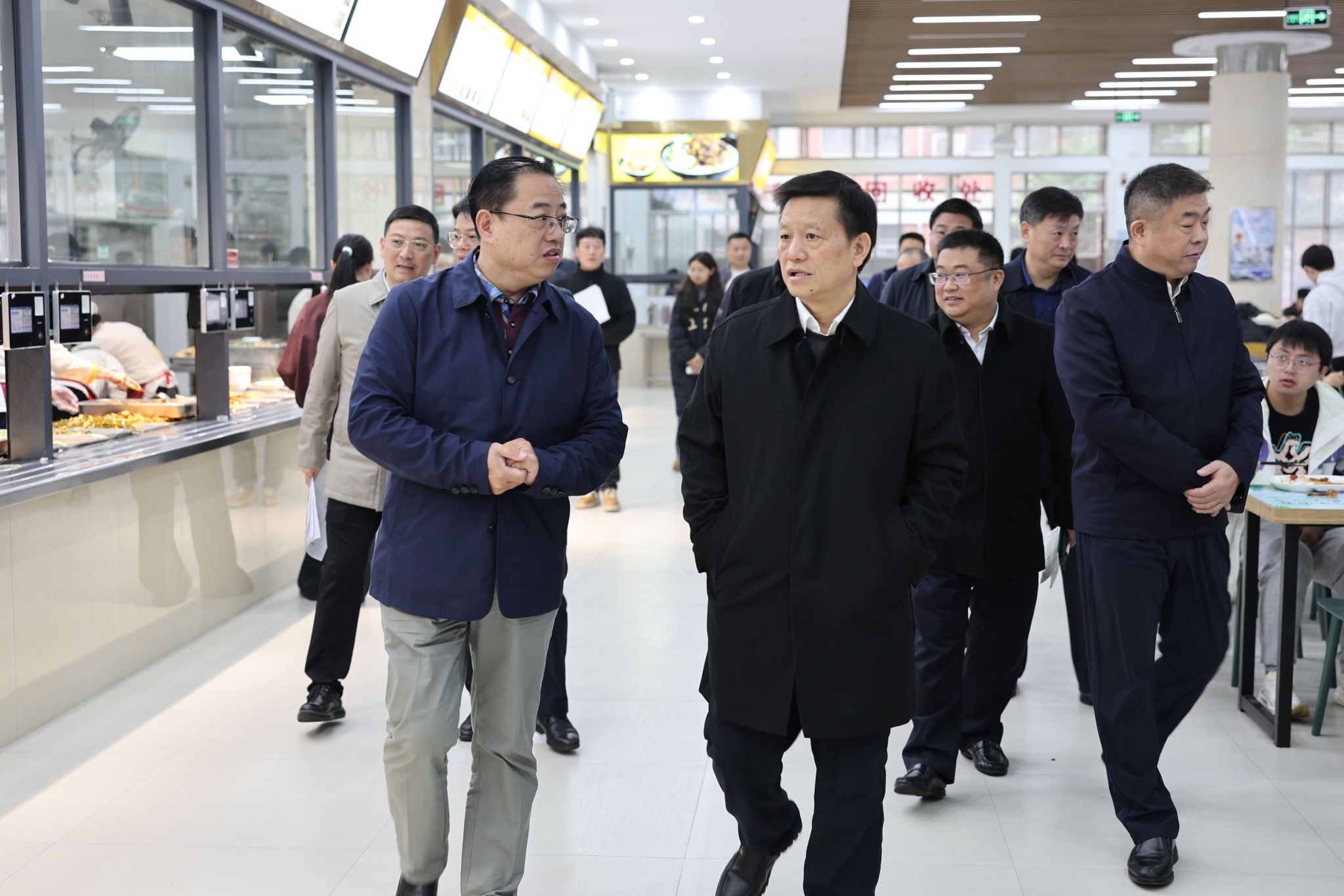 蒋洪新前往学生食堂、应急指挥中心等地调研校园安全工作,并认真听取了各相关负责人的工作汇报。