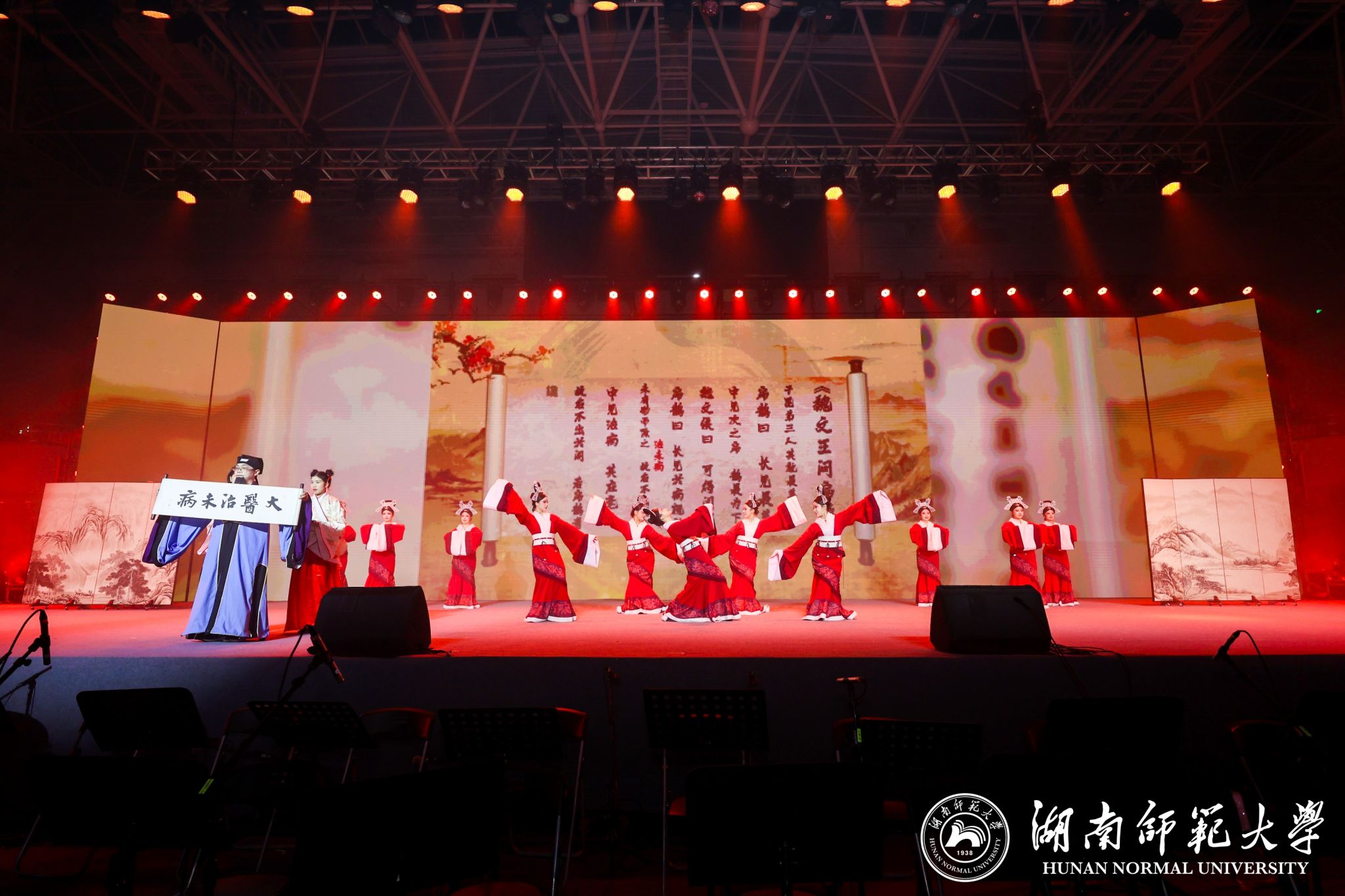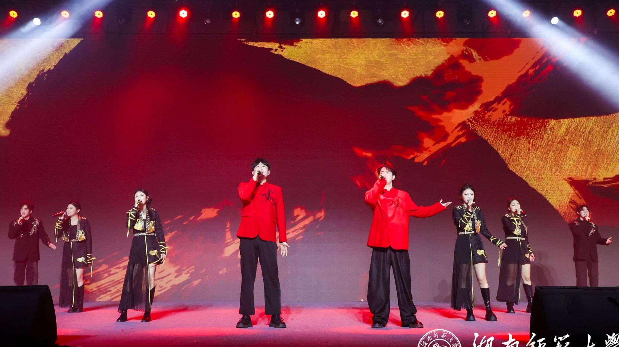 我校研发的智能AI小未闪亮登场,为观众们送上新年的祝福。联欢会在幼儿园和龙狮团共同带来的开场秀《巳巳如意》中拉开序幕,创意歌曲《我把湖南唱给你听》融潇湘山水之灵秀,抒发对湖湘大地的深厚情谊。第一附属医院(省人民医院)情景舞蹈《古今论健·歌舞青春》跨越时空界限,古韵今风交相辉映,展示健康与青春无限活力。双人合唱歌曲《天路》,以天籁之音传递梦想与希望的火种。舞蹈《飞天伎月》以曼妙舞姿勾勒天穹之美,感受月光如水,飞天如梦。服饰秀《天命破晓》巧妙融合非遗元素与时尚潮流,借用“天命人”形象展现青春的自我与活力。情景朗诵《新年,阳光打在我们脸上》以最亲切的问候,引领我们走进诗意与温暖,帮助我们汲取力量,踏上新征程。民乐与合唱《好汉歌》,激昂回荡,英勇豪迈的旋律唱响了新春第一章。小提琴协奏《梁祝》巧妙将交响乐与民间戏曲融合、管乐与弦乐共鸣,展现人民的美好向往。由我校女教授、女干部代表带来舞蹈《东方红的故事》,舞扇轻扬,不仅舞出内心情怀,更舞出未来的欣荣憧憬。交响乐《岳麓书院随想》生动再现岳麓山下学子经世致用、与时俱进的精神风貌。女子独唱《如愿》,悠扬舒缓,歌声中饱含热泪,唱出对新年的美好祝愿与深情期盼。联欢会在钢琴协奏《红旗颂》、大合唱《我和我的祖国》中圆满落幕。一年来,我校始终秉承“仁爱精勤”的校训精神,在教学和科研领域取得丰硕成果,学科建设亦取得长足进步。展望未来,我校将继续深化教育改革,拓展国际交流与合作,培育更多具有创新精神和实践能力的人才,为社会发展贡献更多师大智慧与力量,朝着建设世界一流大学的目标奋勇前行。