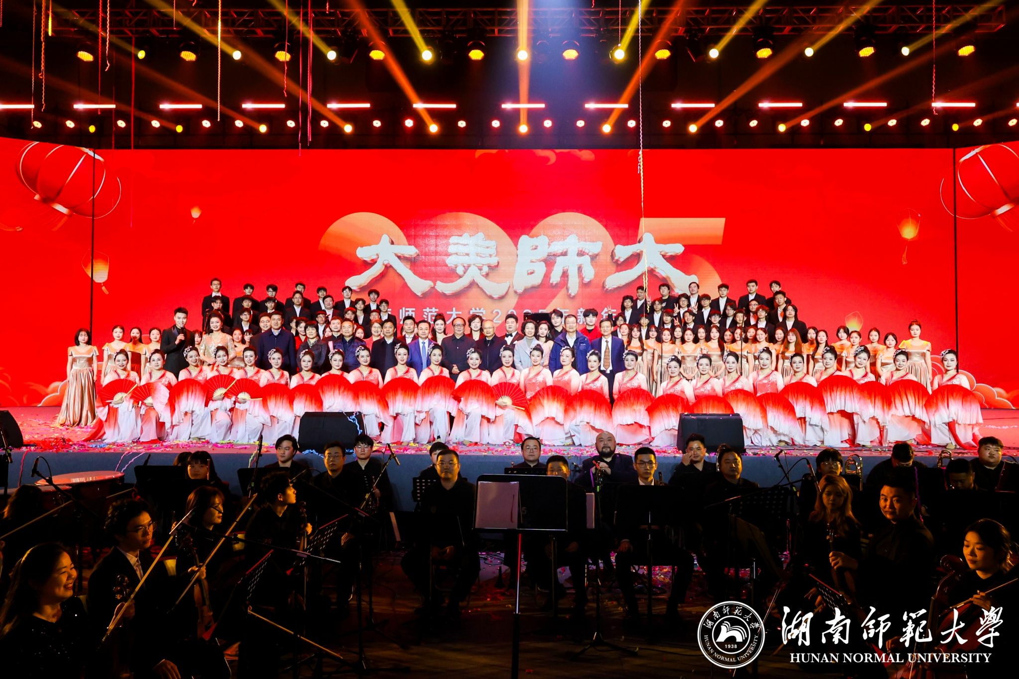 (记者 黄依依 李欣茹 凤馨)12月27日下午,我校“大美师大”2025年新年联欢会在江湾体育馆举行。湖南省人大常委会原副主任、省文化艺术基金会主席肖雅瑜,省人大常委会原副主任、省教育基金会理事会理事长王柯敏,省妇联党组书记、主席杨兰英,长沙市政协党组书记、主席陈刚,省发展和改革委员会党组成员、副主任蒋俊,省自然资源厅党组成员、副厅长宋琤,省总工会党组成员、省教育工会主席刘湘凌,团省委副书记刘训,湖南农业大学原党委书记陈弘,省教育工会副主席邓曼、朱冠星,校党委书记、欧洲科学院院士蒋洪新,校长、中国工程院院士刘仲华,中国工程院院士刘少军及全体在家校领导出席联欢会。