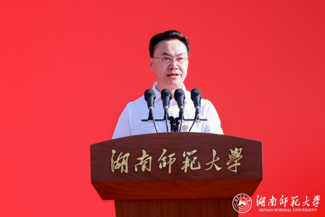 校长、中国工程院院士刘仲华,副校长刘怀德、唐贤清、杨震、谢资清、潘安练,学校相关职能部门、各学院负责人,以及全体新生一同参加典礼。开学典礼由副校长王辉主持。