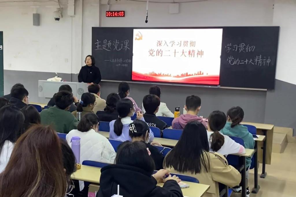 曾南雁从“深刻领会党的二十大召开的重大意义”“科学把握党的二十大精神的核心要义”“自觉践行新时代青年的责任与担当”三个方面带领党员同志们了解了党的二十大精神,并从思想引领、党的领导、战略部署等方面对新时代伟大成就进行了系统梳理。她以“六个坚持”对党员同志们提出了要求,并表示,要开辟马克思主义中国化时代化新境界,必须做到坚持人民至上、坚持自立自信、坚持守正创新、坚持问题导向、坚持系统观念、坚持胸怀天下。青年党员要保持团结奋斗的精神状态,始终牢记“三个务必”,坚持批评与自我批评,用持续的自我革命来保证作为党员的先进性与纯洁性,做到听党话、跟党走,努力成为堪当民族复兴大任的时代新人,自觉践行新时代青年的责任与担当。
